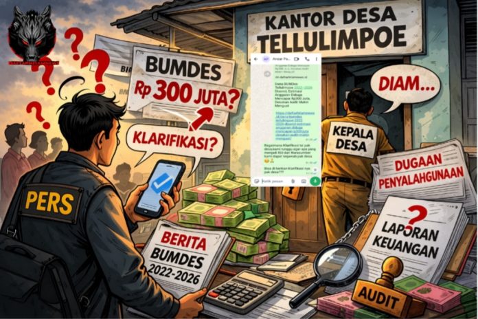 Wajo || DaftarHitamNews.id — Dugaan persoalan pengelolaan dana Badan Usaha Milik Desa (BUMDes) di Desa Tellulimpoe, Kecamatan Majauleng, Kabupaten Wajo kembali menjadi perhatian publik setelah dua kali pemberitaan terkait isu tersebut dipublikasikan oleh redaksi Daftar Hitam News.