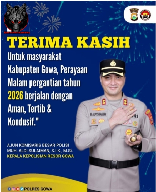 “Terima kasih kepada seluruh masyarakat Kabupaten Gowa. Alhamdulillah, perayaan malam pergantian tahun 2026 berjalan aman, tertib, dan kondusif. Ini adalah buah dari kesadaran kolektif serta kerja sama semua pihak,” ujar AKBP Muhammad Aldy Sulaiman.